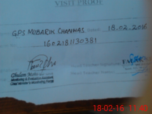 | EMIS Code: 38210127 | Name of School: GPS MUBARAK CHANWAS | |||