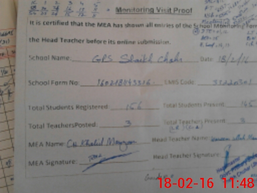 | EMIS Code: 33220301 | Name of School: GPS SHEIKH CHOHAR | |||