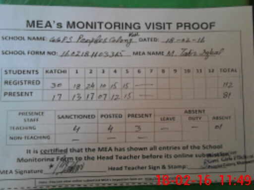 | EMIS Code: 36420350 | Name of School: GGPS PEOPLES COLONY, KHANEWAL | |||