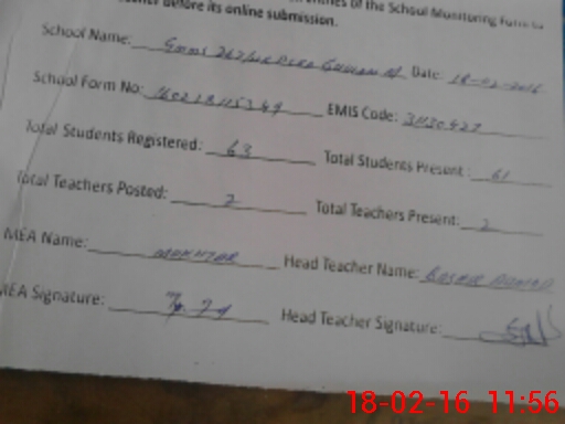| Attendance Register | Head Teacher | MEA with School | Visit Proof |