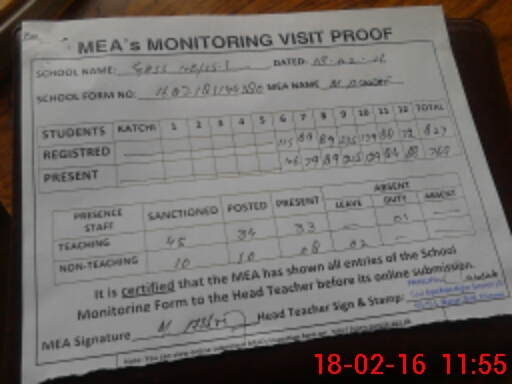 | Attendance Register | Head Teacher | MEA with School | Visit Proof |