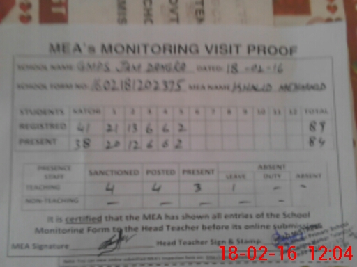 | EMIS Code: 36430380 | Name of School: GMPS JAM DANGRA, TULAMBA | |||