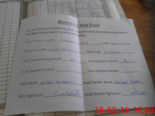 | Attendance Register | Head Teacher | MEA with School | Visit Proof |