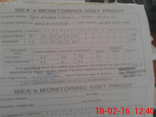 | Attendance Register | Head Teacher | MEA with School | Visit Proof |