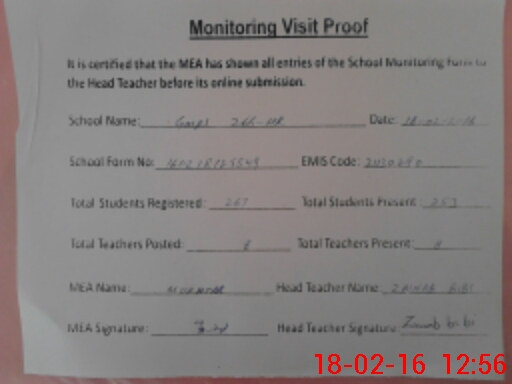 | Certified that this School was Inspected by the Undersigned MEA/DMO Today and the Information Stated Above is as Per Record. | |||||