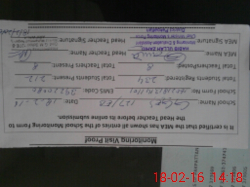 | Certified that this School was Inspected by the Undersigned MEA/DMO Today and the Information Stated Above is as Per Record. | |||||