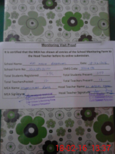 | Certified that this School was Inspected by the Undersigned MEA/DMO Today and the Information Stated Above is as Per Record. | |||||