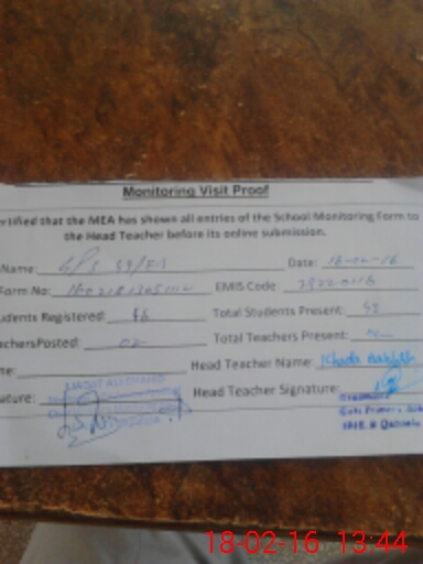 | Certified that this School was Inspected by the Undersigned MEA/DMO Today and the Information Stated Above is as Per Record. | |||||