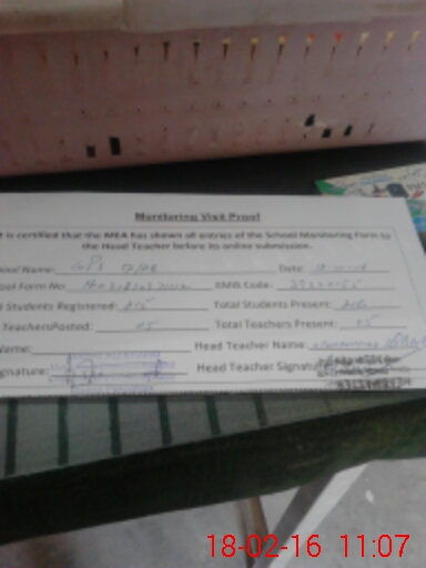 | Certified that this School was Inspected by the Undersigned MEA/DMO Today and the Information Stated Above is as Per Record. | |||||