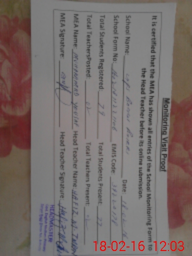 | Certified that this School was Inspected by the Undersigned MEA/DMO Today and the Information Stated Above is as Per Record. | |||||