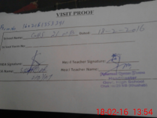 | EMIS Code: 38230889 | Name of School: GHS CHAK NO. 26/MB | |||
