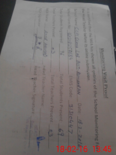| Certified that this School was Inspected by the Undersigned MEA/DMO Today and the Information Stated Above is as Per Record. | |||||