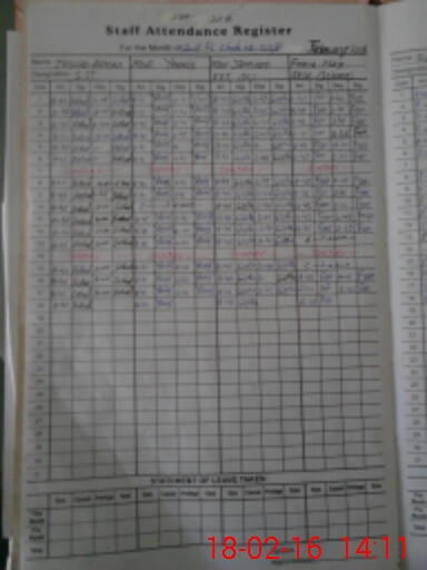 | CNIC | Full Name | Designation | R/C | Absence During Last Calender Month |