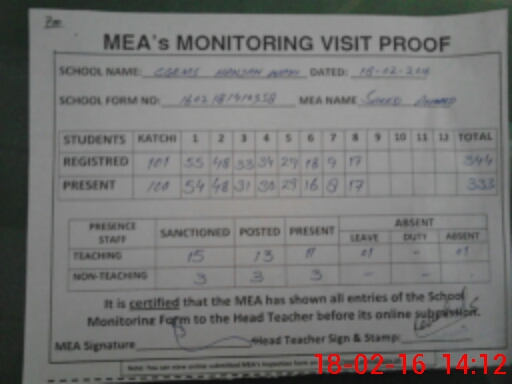 | Certified that this School was Inspected by the Undersigned MEA/DMO Today and the Information Stated Above is as Per Record. | |||||