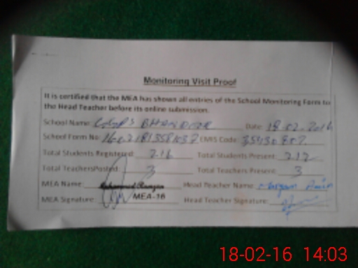 | EMIS Code: 35430807 | Name of School: GGPS BHANDORE | |||
