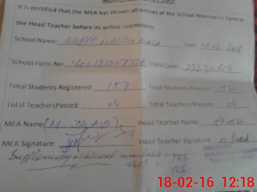 | Certified that this School was Inspected by the Undersigned MEA/DMO Today and the Information Stated Above is as Per Record. | |||||