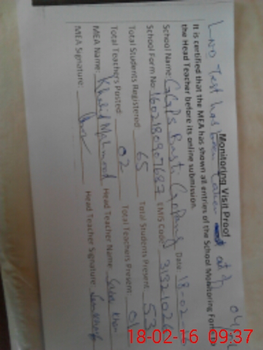 | Attendance Register | Head Teacher | MEA with School | Visit Proof |