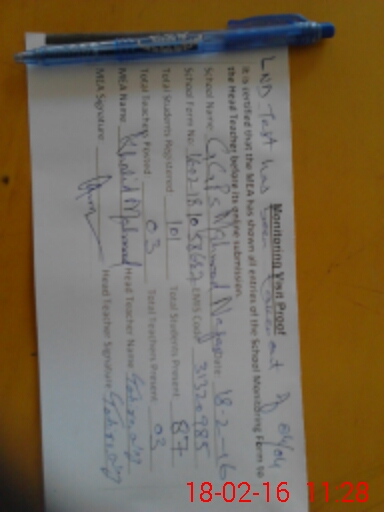| Monitoring Date: 18-02-2016 | Start Time: 18-02-2016 10:57 AM | End Time: 18-02-2016 11:31 AM | Name of MEA: Mu**** As**** KP**** | |