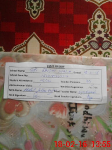| School Visited by School Health & Nutrition Supervisor (No. of Visits) | 1 | Name1: | Asif Mustfa | Name2: | Nill |