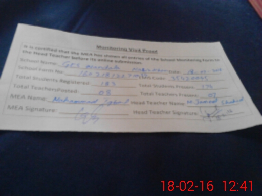 | Certified that this School was Inspected by the Undersigned MEA/DMO Today and the Information Stated Above is as Per Record. | |||||
