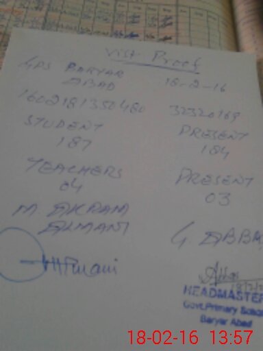| EMIS Code: 32320169 | Name of School: GPS BARYAR ABAD | |||