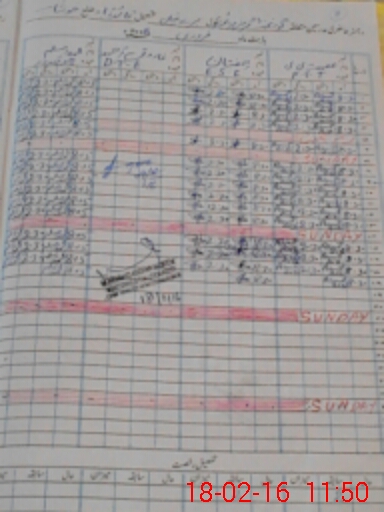 | CNIC | Full Name | Designation | R/C | Absence During Last Calender Month |