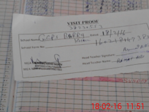 | Attendance Register | Head Teacher | MEA with School | Visit Proof |