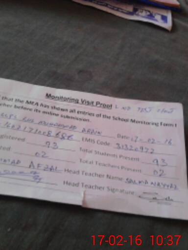 | EMIS Code: 31320972 | Name of School: GGPS GUL MUHAMMAD ARAIN | |||
