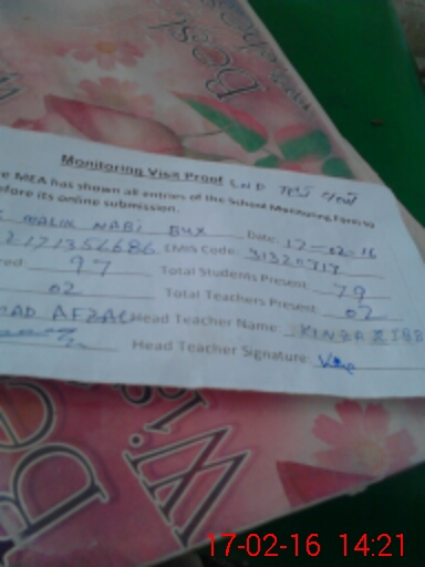 | Certified that this School was Inspected by the Undersigned MEA/DMO Today and the Information Stated Above is as Per Record. | |||||