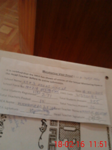 | Attendance Register | Head Teacher | MEA with School | Visit Proof |