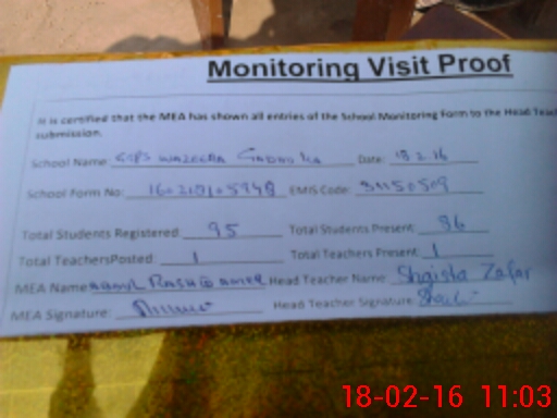 | EMIS Code: 31150509 | Name of School: GGPS WAZEERA GADHOKA | |||