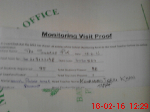 | School Visited by School Health & Nutrition Supervisor (No. of Visits) | 1 | Name1: | MUHAMMAD ADNAN | Name2: | |