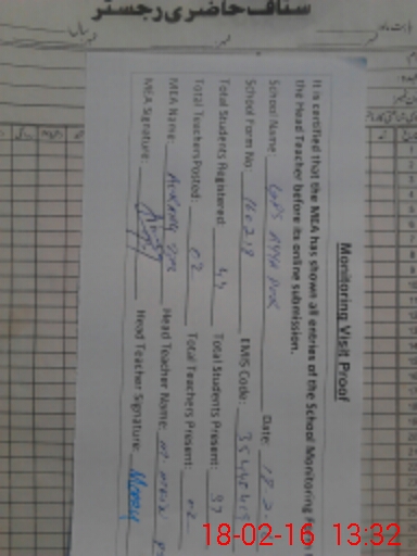 | Attendance Register | Head Teacher | MEA with School | Visit Proof |