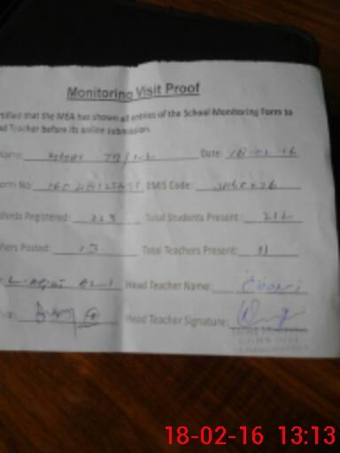 | Certified that this School was Inspected by the Undersigned MEA/DMO Today and the Information Stated Above is as Per Record. | |||||