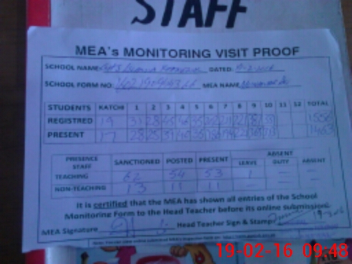 | Certified that this School was Inspected by the Undersigned MEA/DMO Today and the Information Stated Above is as Per Record. | |||||