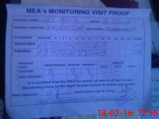 | Attendance Register | Head Teacher | MEA with School | Visit Proof |