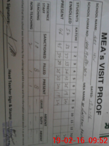 | Certified that this School was Inspected by the Undersigned MEA/DMO Today and the Information Stated Above is as Per Record. | |||||