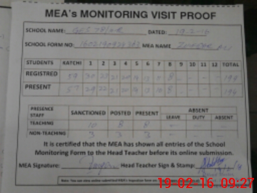 | Certified that this School was Inspected by the Undersigned MEA/DMO Today and the Information Stated Above is as Per Record. | |||||