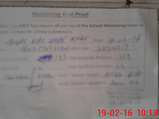 | Certified that this School was Inspected by the Undersigned MEA/DMO Today and the Information Stated Above is as Per Record. | |||||
