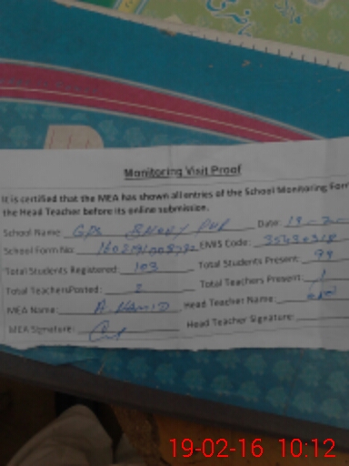 | EMIS Code: 35430318 | Name of School: GPS BHOEY PUR | |||