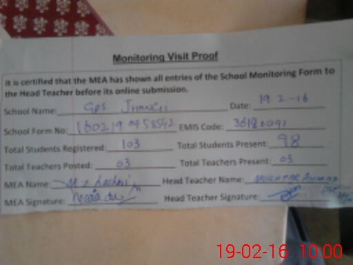 | Certified that this School was Inspected by the Undersigned MEA/DMO Today and the Information Stated Above is as Per Record. | |||||