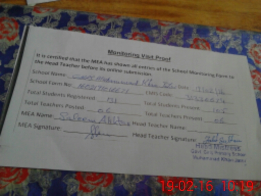 | EMIS Code: 31330674 | Name of School: GMPS MUHAMMAD KHAN JATOI | |||