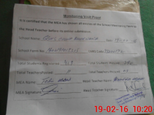 | Attendance Register | Head Teacher | MEA with School | Visit Proof |