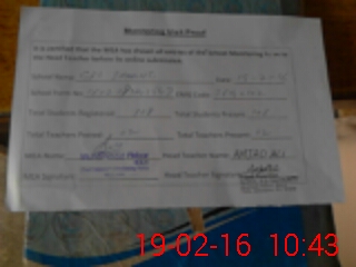 | Attendance Register | Head Teacher | MEA with School | Visit Proof |