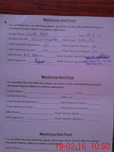 | Certified that this School was Inspected by the Undersigned MEA/DMO Today and the Information Stated Above is as Per Record. | |||||