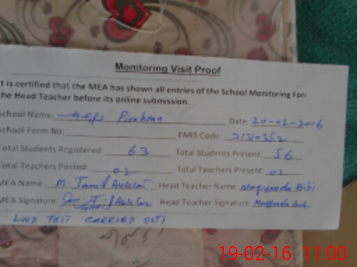 | Certified that this School was Inspected by the Undersigned MEA/DMO Today and the Information Stated Above is as Per Record. | |||||