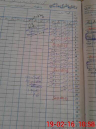 | CNIC | Full Name | Designation | R/C | Absence During Last Calender Month |