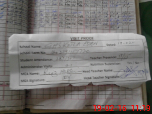 | Attendance Register | Head Teacher | MEA with School | Visit Proof |