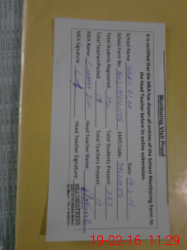 | Certified that this School was Inspected by the Undersigned MEA/DMO Today and the Information Stated Above is as Per Record. | |||||