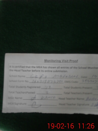 | Certified that this School was Inspected by the Undersigned MEA/DMO Today and the Information Stated Above is as Per Record. | |||||